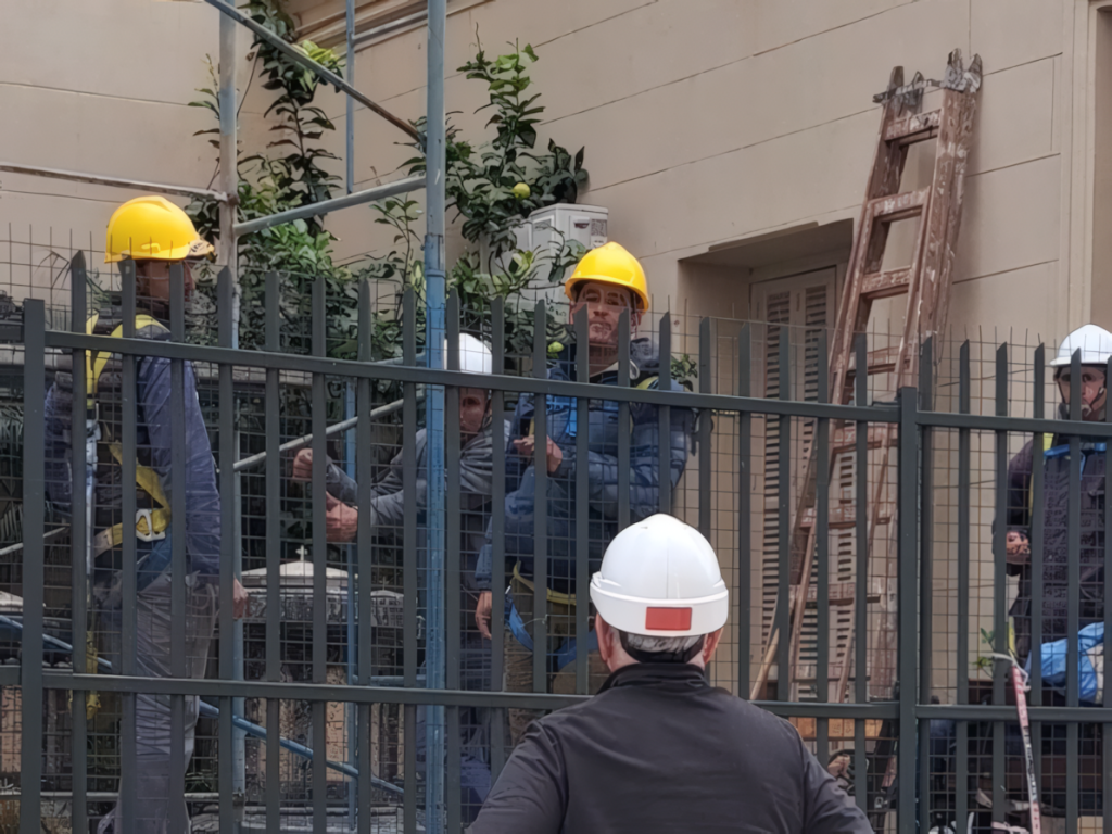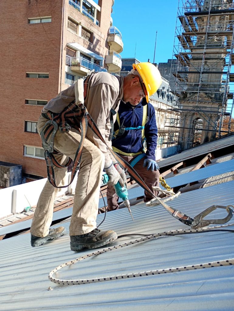 Para esta tarea organizamos varios equipos de trabajo con experiencia en áreas específicas de seguridad e higiene, restauración, andamiaje, supervisión y comunicación. Además, incluimos un colaborador externo experto en preservación de património histórico.