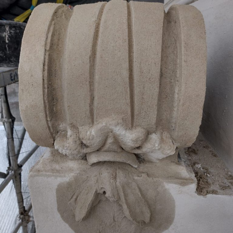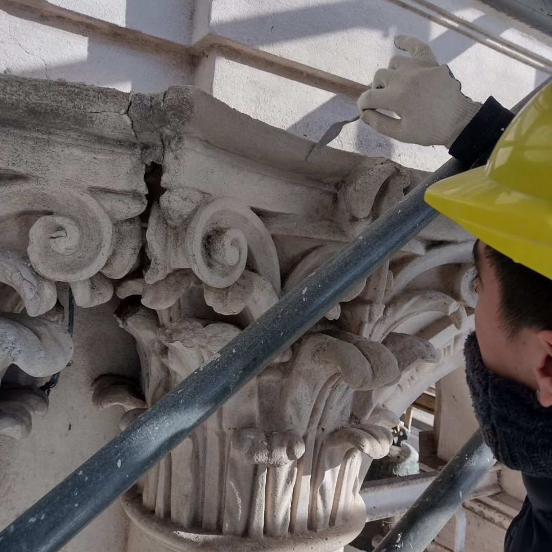 Recuperamos la integridad y belleza original, revirtiendo el daño del tiempo y la intemperie. Cada curva, cada relieve, se está recuperando con un proceso meticuloso de limpieza, consolidación y reintegración, utilizando materiales compatibles para asegurar la durabilidad y autenticidad. La técnica de reintegración cromática, por ejemplo, nos permite devolver el aspecto original sin alterar la pátina histórica.